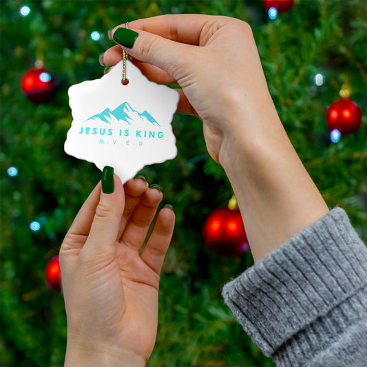 Jesus Is King White with Teal Ceramic Ornament